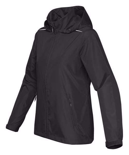 Lightweight convertible jacket. The stowable hood adds extra protection when showers arrive, while a vented back yoke is like A/C for your core. With reflective trim on the shoulder for added visibility in low light and availability in a wide range of colors.