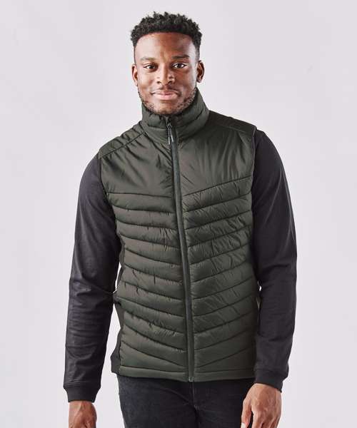 Pure Earth by STORMTECH™. Durable, PFC-free, water-repellent finish. Combination of broken fibre fill and polyfill. Adjustable hem. Zipped hand pockets with brushed tricot. Decoration access. STORMTECH Thermolex™ high loft synthetic down. High-performance windproof outer shell. Contrast single-layer stretch side panels. Partial elasticised armhole trim. Internal mesh stash pockets.