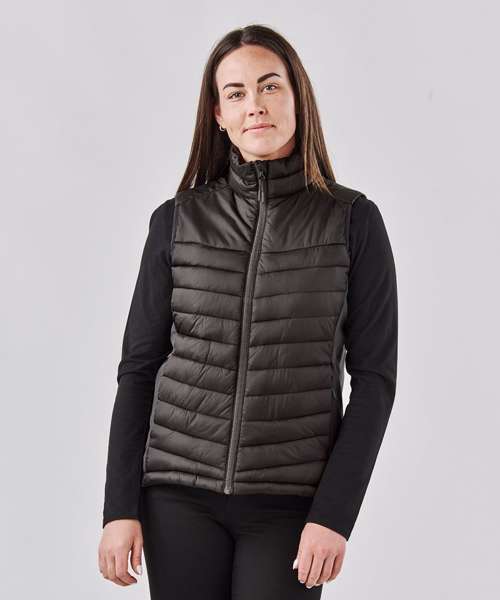 Pure Earth by STORMTECH™. Durable, PFC-free, water-repellent finish. Combination of broken fibre fill and polyfill. Adjustable hem. Zipped hand pockets with brushed tricot. Decoration access. STORMTECH Thermolex™ high loft synthetic down. High-performance windproof outer shell. Contrast single-layer stretch side panels. Partial elasticised armhole trim. Internal mesh stash pockets.