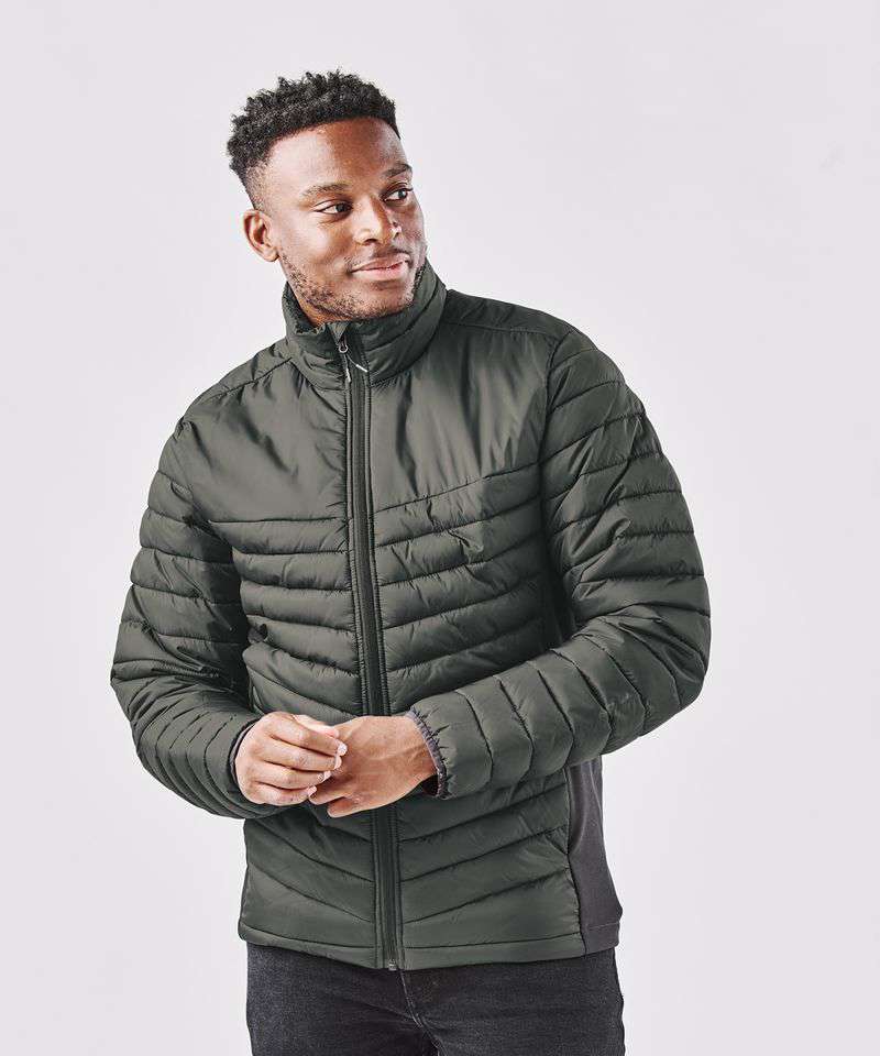 Pure Earth by STORMTECH™. STORMTECH Thermolex™ high loft synthetic down. Durable, PFC-free, water-repellent finish. High-performance, windproof outer shell. Combination of broken fibre fill and polypill. Contrast single layer stretch side panels. Adjustable hem with drawcord. Elasticised cuffs. Zipped hand pockets with brushed tricot. internal mesh stash pockets. Internal full-length storm flap with chin saver. Decoration access.