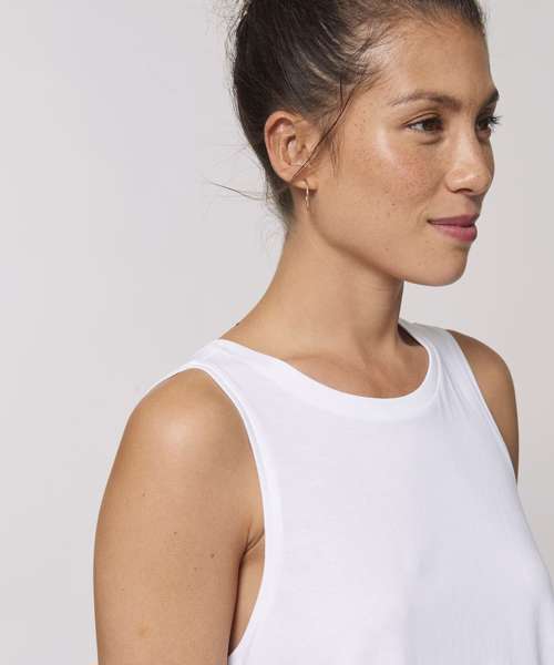 The women's sleeveless top is cut in premium 120gsm 100% organic cotton, and is complete with our signature soft-hand feel.
