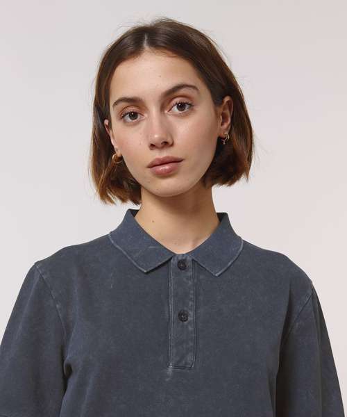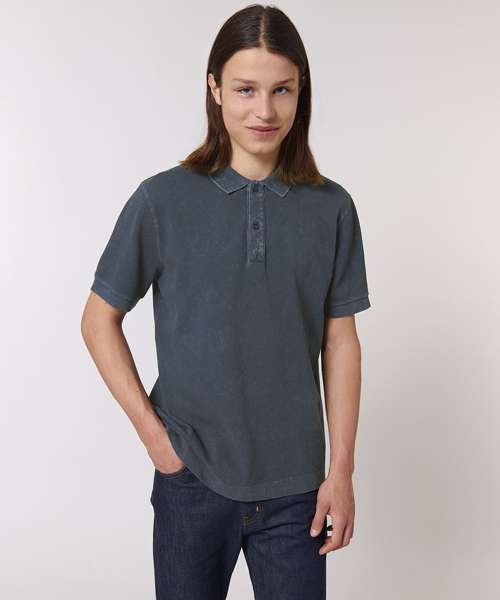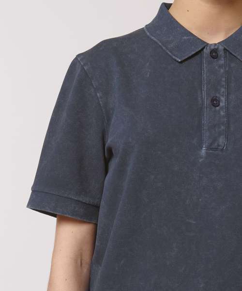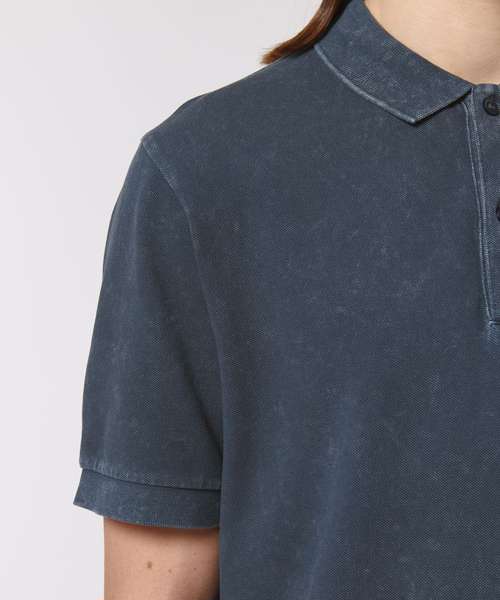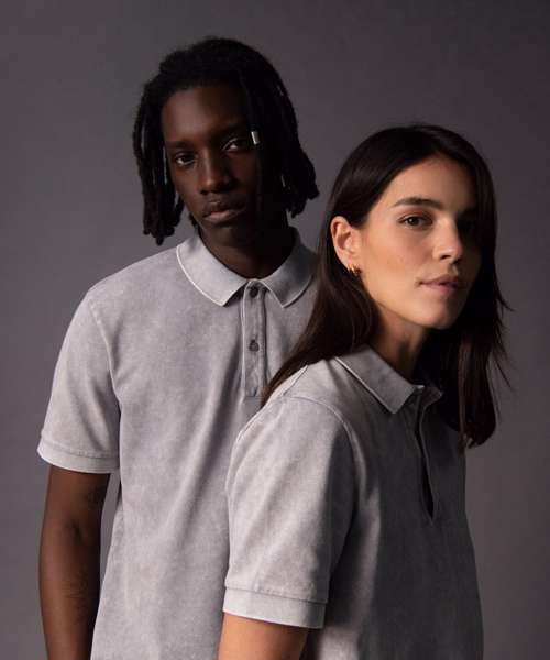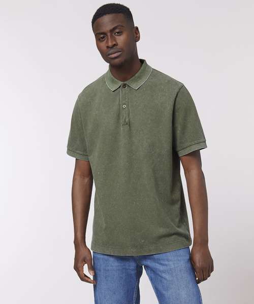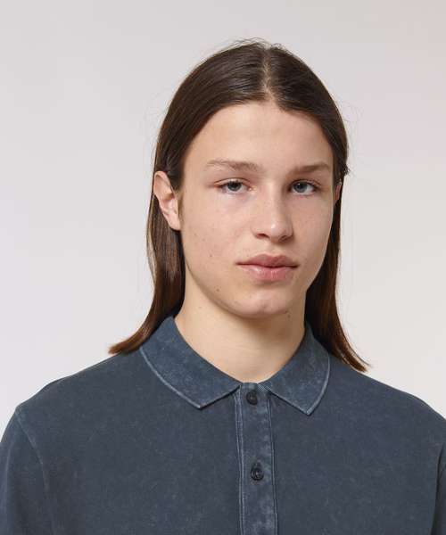 Set-in sleeve. Flat knit rib on collar and sleeve hem. Inside heavy single Jersey back neck tape. Front placket with 2 buttons in matching body colour. Slit at side seams with heavy single Jersey facing. Single needle topstitch at shoulder seams. Bottom hem with narrow double needle topstitch. Garment-dyed product – each garment may vary in appearance, colour may bleed, follow our care label. Read carefully the print recommendations.
