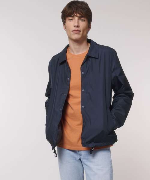 Welt pockets at front. Round drawcords at bottom hem in matching body colour, with metal tipping. Semi-elastic sleeve cuff. Inside chest welt pocket. Self-fabric half-moon at back neck. Inside zip opening at bottom hem and wearer’s left chest for easy decoration.