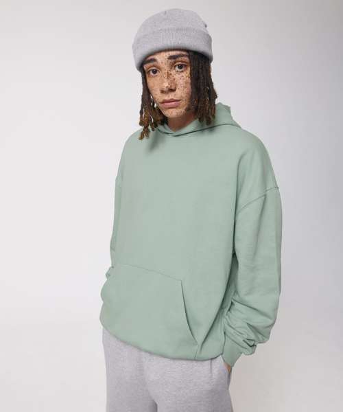 The unisex oversized boxy dry hand-feel hoodie sweatshirt with double-layered hood offers a relaxed feel with stylish details.