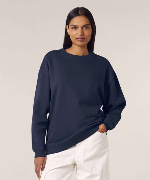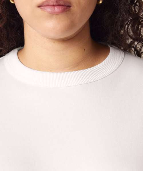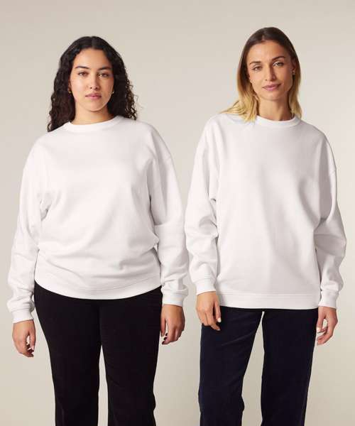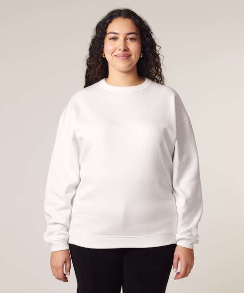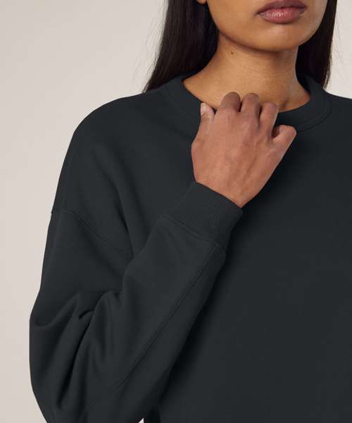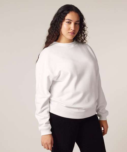 Premium oversized women’s crew neck sweatshirt in brushed 100% organic cotton, 300gsm. Dropped shoulders, ‘boyfriend’ style. Excellent printability.