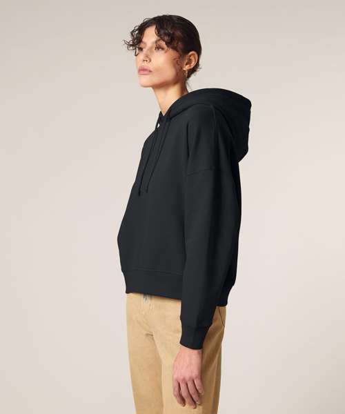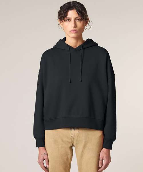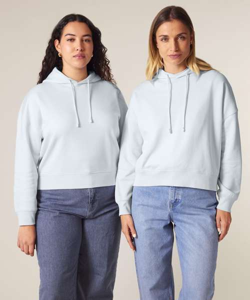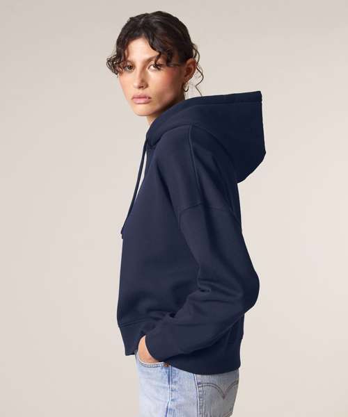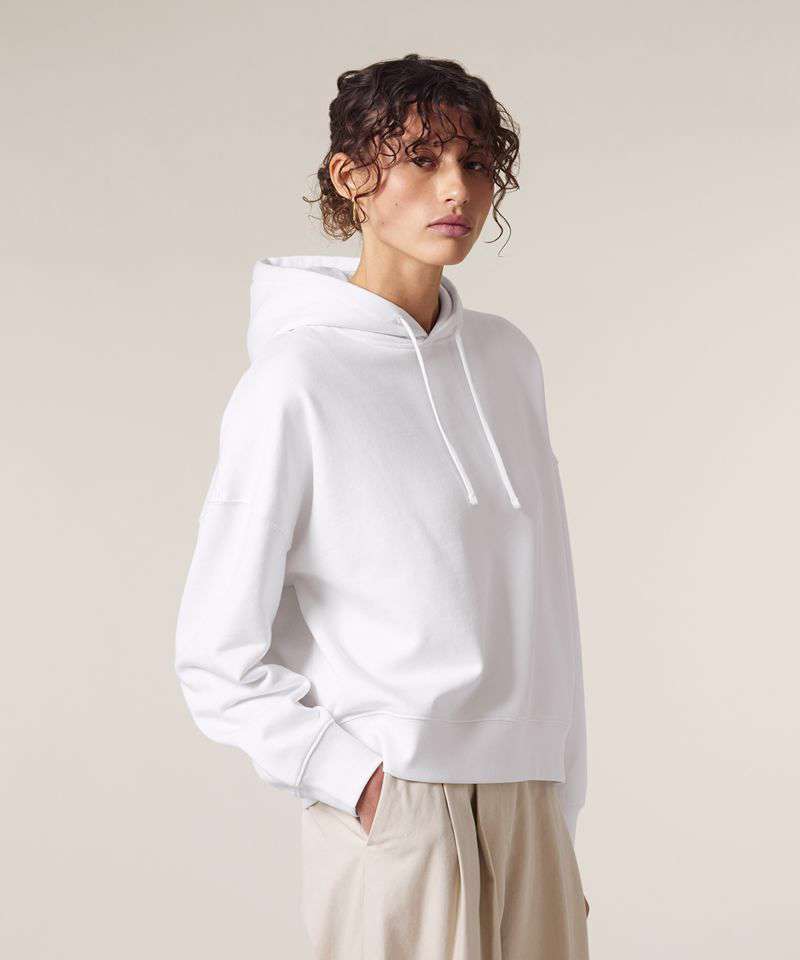 Premium women’s hoodie sweatshirt in brushed 100% organic cotton, 300gsm. Dropped shoulders, adjusted length. Excellent printability.