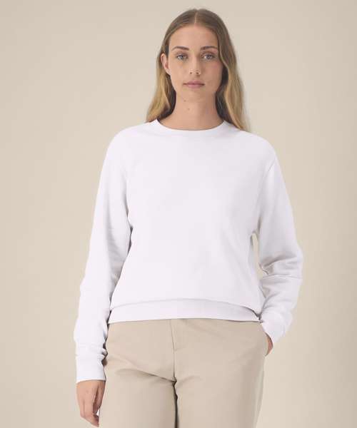 The Stella Thinker is a women’s recycled sweatshirt crafted from a soft recycled cotton blend. With its clean, medium fit and soft hand feel, it offers lasting comfort and everyday versatility. Designed for businesswear, lifestyle and branded collections, it features set-in sleeves and structured 1x1 rib finishes, plus twin-needle topstitching at key seams for shape retention. The herringbone back neck tape and self-fabric half moon add refined interior details. Built for comfort and durability, this sustainable sweatshirt provides a smooth, reliable base for embroidery or print – ideal for corporate branding and sustainable collections.