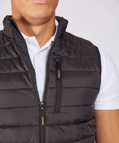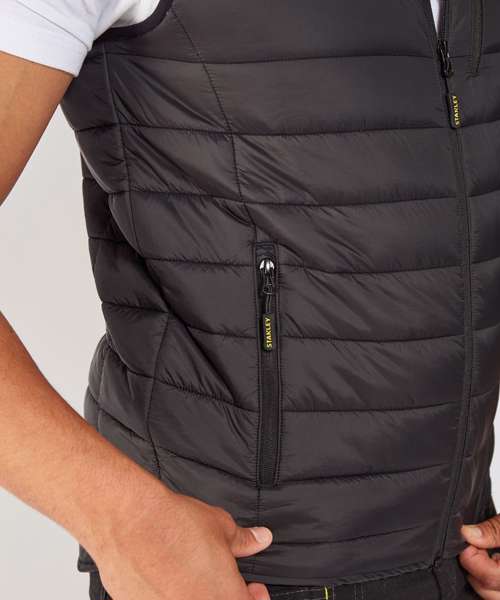 Insulated zip-through gilet with chest pocket and narrow baffles. Funnel neck. Water-resistant. Zipped pockets. UKAS certified. ISO certified.