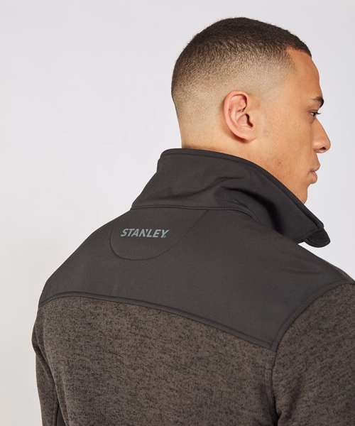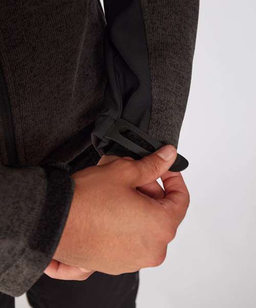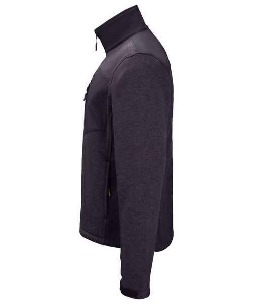 Zip-through knitted fleece with zipped chest pocket and soft shell inserts. Funnel neck. Knitted fabric base. Adjusted cuffs. UKAS certified. ISO certified.