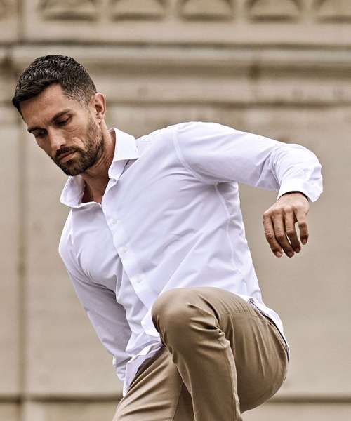 The Active stretch shirt has a shaped fit with luxury four-way stretch for total comfort. The knitted cotton/elastane quality ensures elasticity and softness – and it’s quick-drying, so is easy to wash and care for.