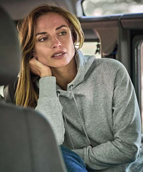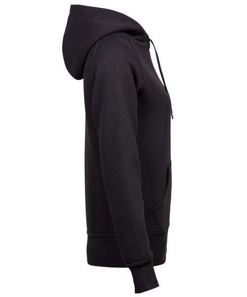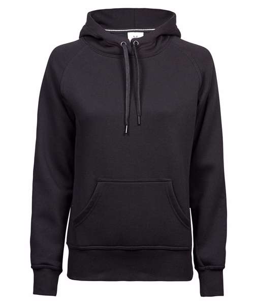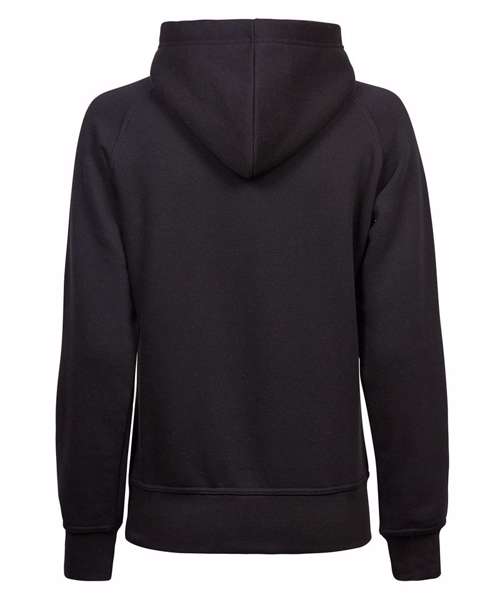 The heavyweight Women’s hooded sweatshirt features a large front pocket and an adjustable hood with double-stitched elastic cuffs and waistband.