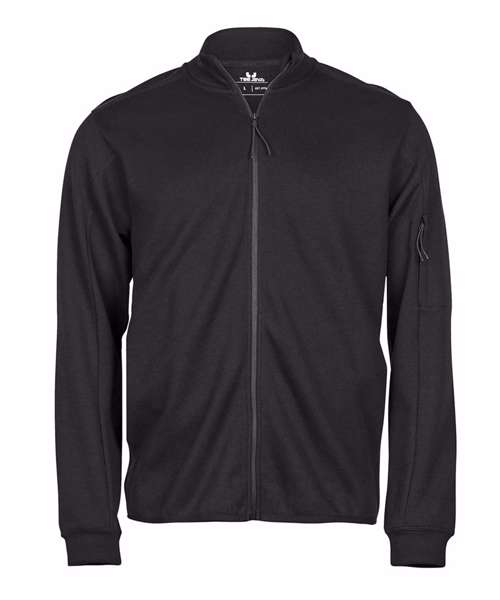 Full-zip. Two open front pockets. Zipped sleeve pocket. Self-fabric cuffs. Elastic tape at the bottom hem. Double pre-shrunk. Silicone treatment. SBS zips.