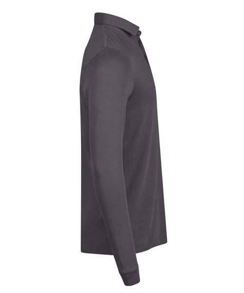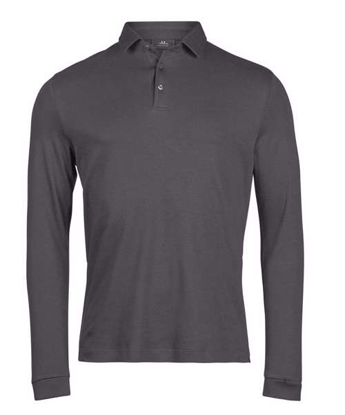The Pima cotton long-sleeve polo combines comfort with refined style. Featuring a self-fabric collar and a stylish three-button placket, it offers a relaxed yet sleek look for corporatewear. A tailored fit and cuffed sleeves ensure a sharp appearance in any business setting.