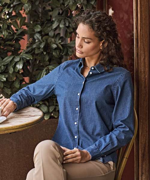 The Women’s denim shirt offers a comfortable fit with casual refinement. Garment-washed, it’s crafted from a fine long fibre cotton and elastane blend, providing a soft stretch that enhances freedom of movement. It’s designed with a pointed collar and a curved hem, while the Ascolite button-wrapping system ensures the buttons remain intact through repeated washing.