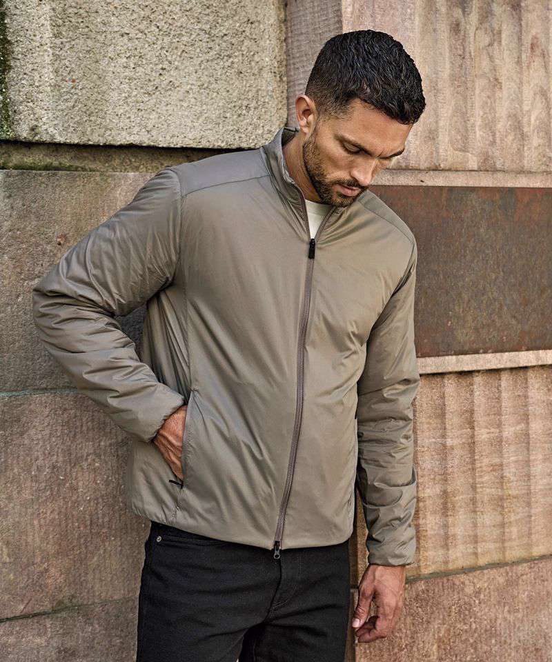 Inner pocket. Adjustable hem. Two practical front pockets. Two-way SBS zip. Certified recycled polyamide. Weightless performance. Simply light, simply pure. Certified recycled fabrics. A lightweight, stylish jacket line made for both indoor and outdoor use. Ease of movement. Airy, luminous and sophisticated. The perfect hybrid of sporty and casual.