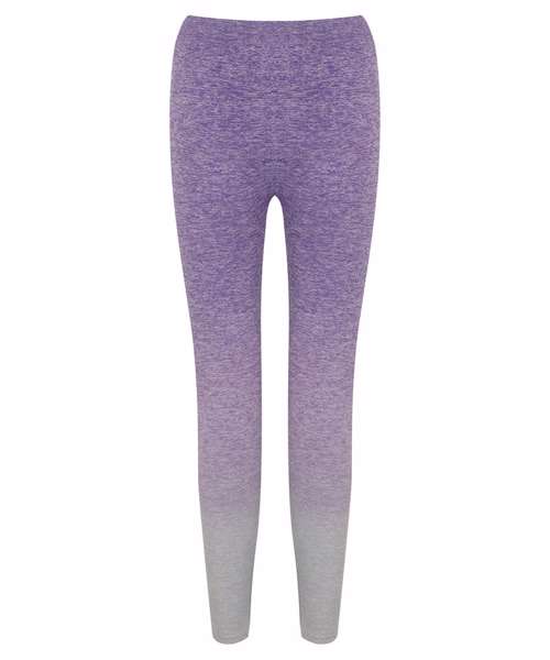 Fitted, high-stretch leggings with grown-on waistband. Seamless knit for comfort. Melange fabric with fade out/ombre colouring. Blind stitch at hems. Tombo tear-out label.