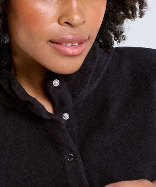 Cropped pull-over fleece with high neck. 1/4 neck popper fastenings to front. Elasticated waistband. We recommend using block out vinyl and inks.Product contains no branded neck or waist label. Removable Kimble or looped garment tags. Inner seam label holds important product information on one label with a second label containing brand information which can be cut-away.