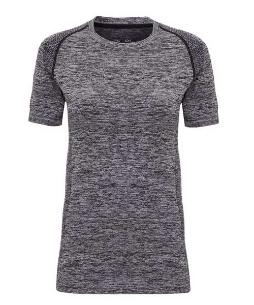 Seamless. Wicking fabric Short sleeves. Attractive embossed design. Ribbed hem and cuffs. Round collar. Stretch. Contrast stitching. We recommend using block out vinyl and inks.Product contains no branded neck or waist label. Removable Kimble or looped garment tags. Inner seam label holds important product information on one label with a second label containing brand information which can be cut-away.