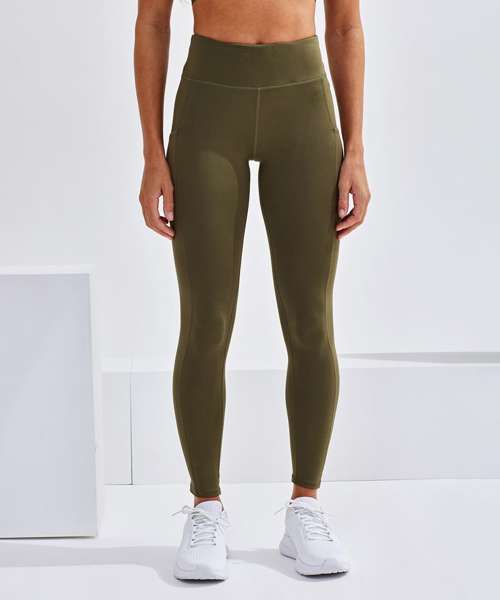 Full-length leggings. Soft stretch fabric. Elasticated waistband. Pocket inside waistband useful for storing locker keys. Compression fit. 2 mesh phone pockets, one on each side of the leg. We recommend using block out vinyl and inks.Product contains no branded neck or waist label. Removable Kimble or looped garment tags. Inner seam label holds important product information on one label with a second label containing brand information which can be cut-away.