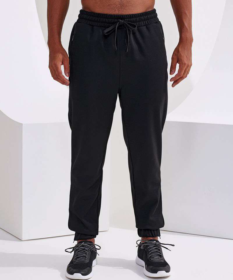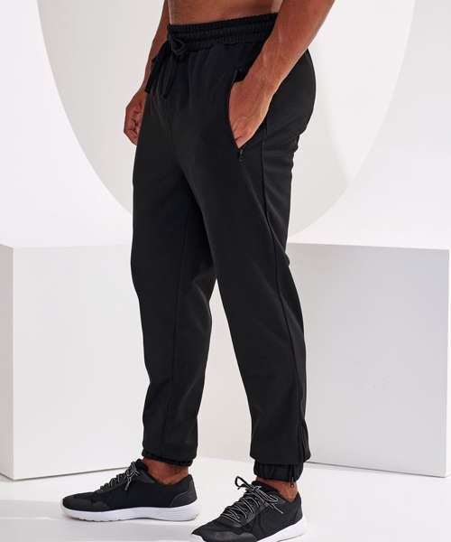 Elasticated waistband. Classic fit. Cord-tie fastenings to waist. Zip pockets to sides. Elasticated cuffs with zip openings to side of legs. Made with recycled polyester, Spun dyed technology. Spun dye melts colour pigments and recycled polyester together, creating coloured fibres using fewer chemicals, less water and less CO2. Spun dyed fabric also improves the colour-fastness of garments. We recommend using block out vinyl and inks.Product contains no branded neck or waist label.* Removable Kimble or looped garment tags. Inner seam label holds important product information on one label with a second label containing brand information which can be cut-away.
