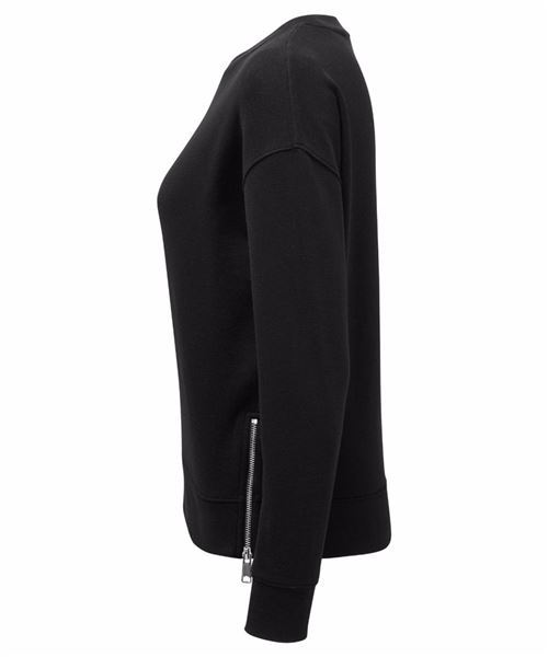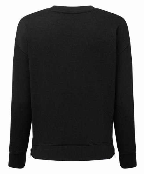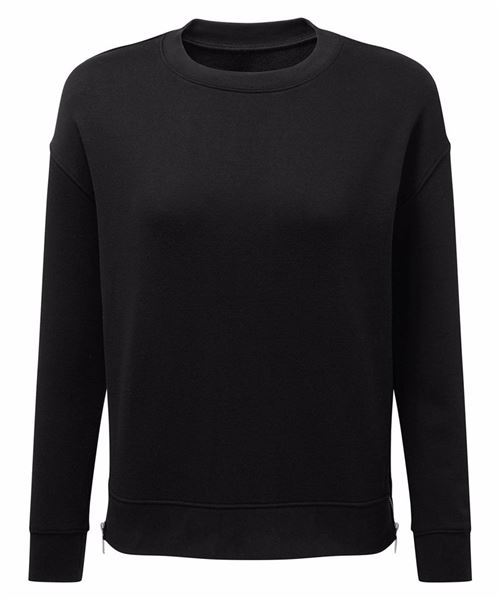 Crew neck recycled polyester sweatshirt. Brushed fleece inner. Zip detailing to side of sweatshirt that can be zipped and unzipped. We recommend using block out vinyl and inks.Product contains no branded neck or waist label. Removable Kimble or looped garment tags. Inner seam label holds important product information on one label with a second label containing brand information which can be cut-away.