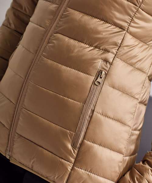 Tonal reverse coil zip on centre front with signature zip puller and internal storm flap with chin guard. Horizontal stitched sandwiched narrow baffles. Tonal reverse coil zip pockets with upper zip garages. Stretch binding on cuffs and hem for added protection. Side seam shaped panelling. Packable bag. Internal signature back neck hanger loop. 250gsm lightweight. polyester fill. Inside binding around seams. Product contains no branded neck label.* Removable Kimble or looped garment tags. Inner seam label holds important product information on one label with a second label containing brand information which can be cut-away.
