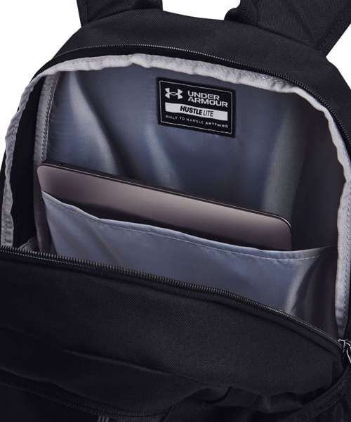 UA Storm technology delivers an element-battling, highly water-resistant and stain-resistant finish. Padded back panel and ergonomic straps for comfortable carrying. Soft-lined laptop sleeve holds up to 15" MacBook Pro® or similarly-sized laptop. Zipped front valuables pocket. Side water bottle pocket. Molle webbing for additional attachment points. Durable PU-coated bottom panel.
