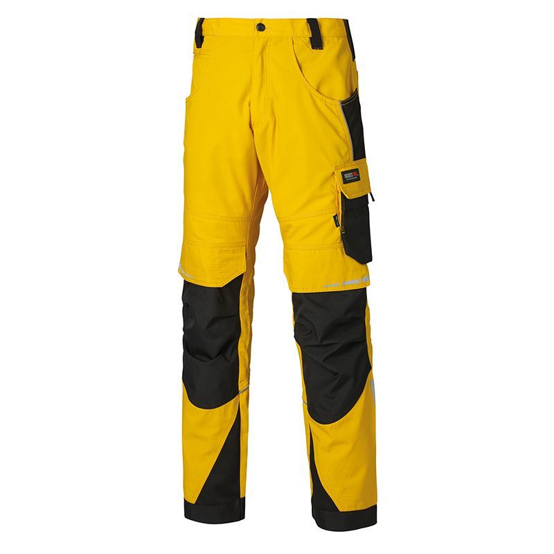 Ergonomic fit. YKK zip fly. Tencate European fabric stretch back waistband. Cordura reinforced pockets. Cordura knee pad pockets. Cordura hem guards. Reflective detailing. When used in combination with Dickies SA70 Kneepad. this trouser conforms to EN ISO 13688:2013 and EN 14404:2004+A1:2010.