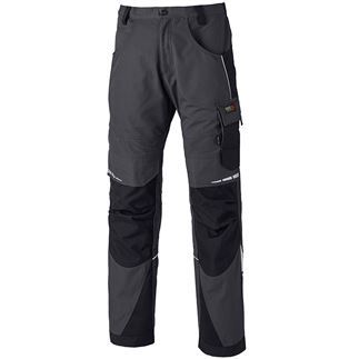 These are premium quality kneepad trousers. The Dickies pro trousers have numerous features, with highlights including kneepad pouches and numerous pockets, all reinforced with tough CORDURA® fabric. A superior, modern, ergonomic fit is provided with the stretch back waistband and side panels offering exceptional comfort and movement of fabric where required when bending.