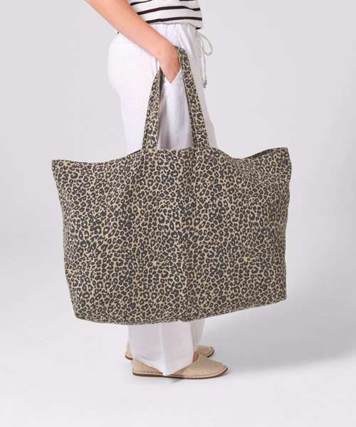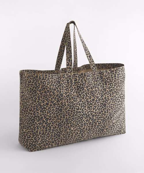 Washed-effect finish. Leopard print design. Extra-large capacity. Self-fabric carry handles. Can be carried by hand or over the shoulder. CutAway label for ease of rebranding. Due to the garment-dyeing process, each colour is unique and may vary, with potential fading over time. Contains 70% GRS-certified recycled cotton and 30% GRS-certified polyester, certified by Control Union CU811033.