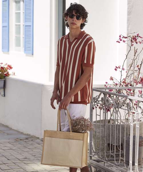 Every piece in the unlaminated Natural Starched Jute collection has angular edges and a sturdy construction for more boxy styling and structured storage. The fabric is tactile to the touch and rustic in aesthetic, yet still robust and reliable. This jute shopper is a multifunctional must-have, finished with a print-friendly front pocket made from 100% organic cotton canvas. Cotton carry handles ensure complete comfort. Also available in a smaller midi size (WM483).