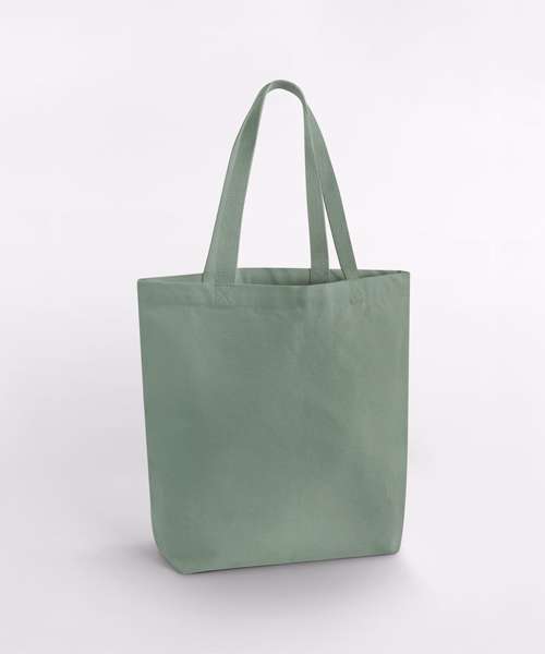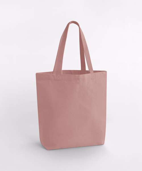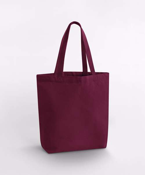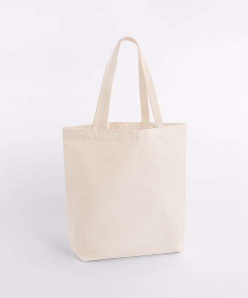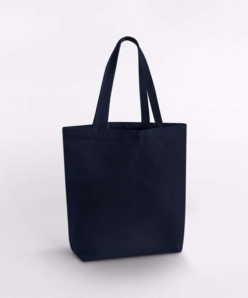 Durable canvas construction. Soft webbing handles for maximum comfort. Faux gusset detailing. Can be carried by hand or over the shoulder. CutAway label for ease of rebranding.