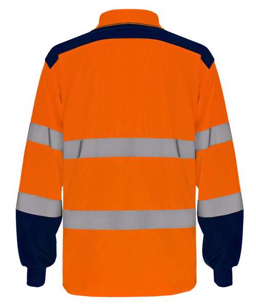 Conforms to EN ISO 20471 Class 2 and Orange/Navy is also RIS-3279-TOM Railway use certified. Made of Air-Cool breathable, quick-dry, soft, skin-friendly, bird-eye fabric from recycled polyester. Great flexibility and stretch with brilliant shape retention. Two extra-wide retro-reflective tapes around the body. Navy contrast on the shoulders, collar, cuffs and hem. Side vents with reinforced stitches. Relaxed fit. Twin-needle stitching. Tag-free. Individually packed.