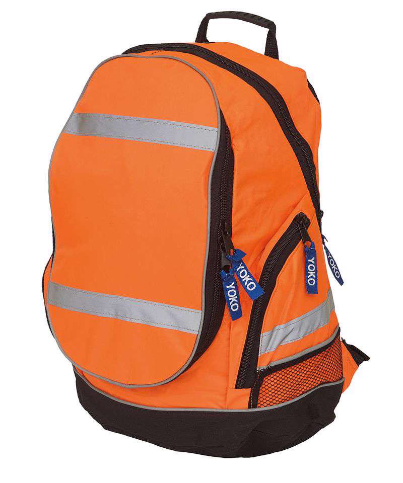 This fluo bright waterproof rucksack is designed for both work and leisure use; Made of 600D waterproof polyester; One main compartment with inside separation; Internal pocket for MP3 / iPod with rubber outlet for earphones; 2 side mesh pockets; Front expandable pocket to fit a standard ball / helmet; Webbed carrying handle; Adjustable padded shoulder straps; 25mm reflective strips on three sides. ISO20471 compliant fabric offers great visibility.
