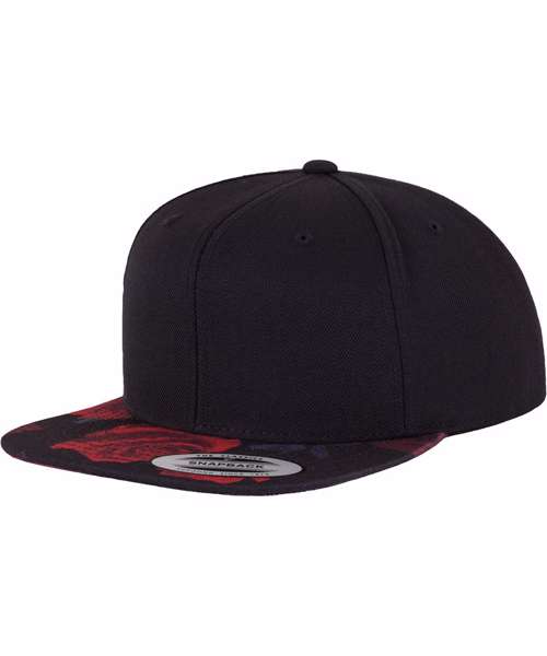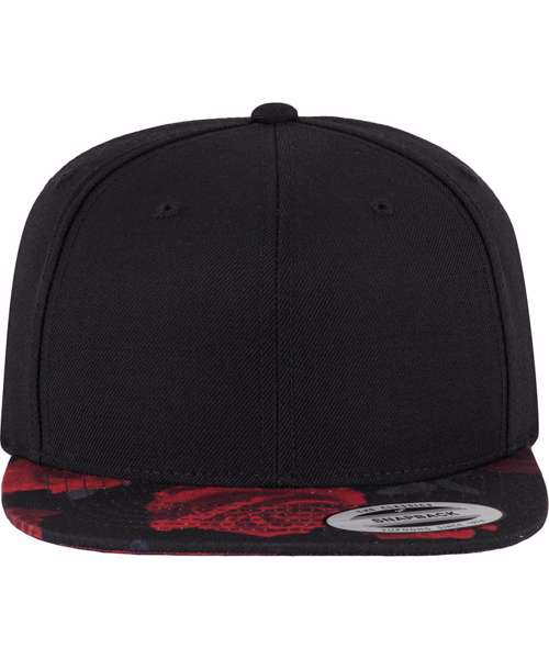 Roses snapback. Classic pro baseball shape with reinforced front and matching snap closure. Subtle rose print on the visor.