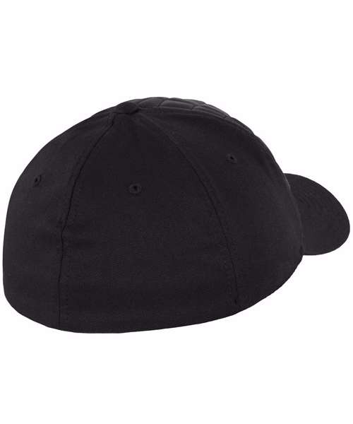 The diamond quilted Flexfit has an athletic shape, hard buckram and silver coloured undervisor. This is finished off with a quilted leather imitation front.