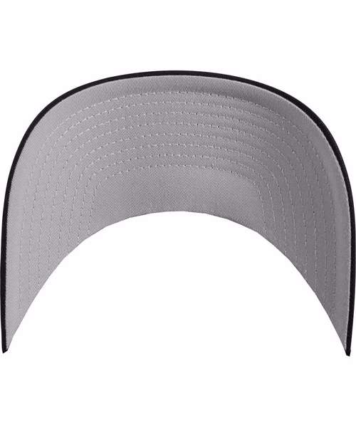 Diamond quilted Flexfit cap. Athletic Shape. Hard buckram. Silver coloured undervisor. Quilted leather imitation front.