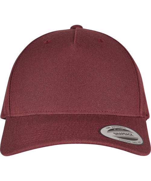 5-panel cap with snapback closure, colour-matching snapback closure, one size fits all, made of acrylic and a wool content, 8-fold quilted, pre-bent visor, 5-panel shape.