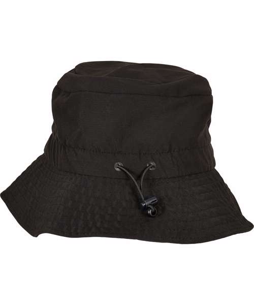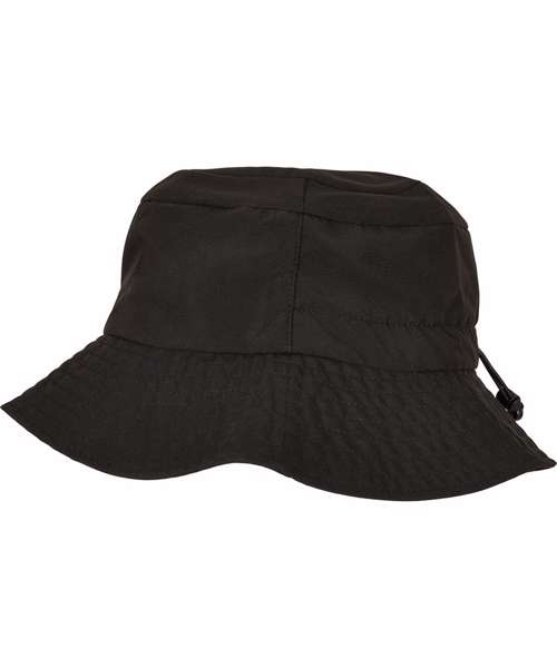 The reversible bucket hat offers two sides for being joyful. One side is designed in a two-tone batik pattern, the other side in plain black. Naturally, the bucket hat features a flat brim with decorative seams and bordered eyelets. It is made of sturdy polyester and is a one size fits all.