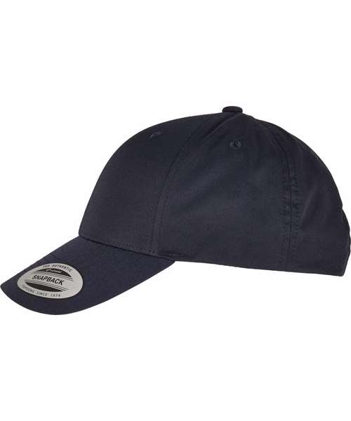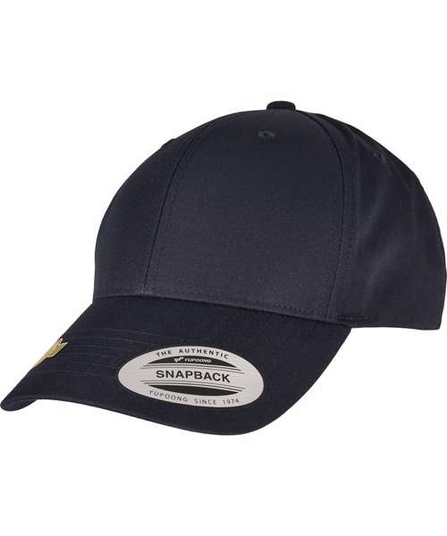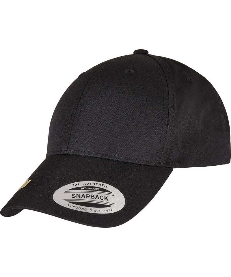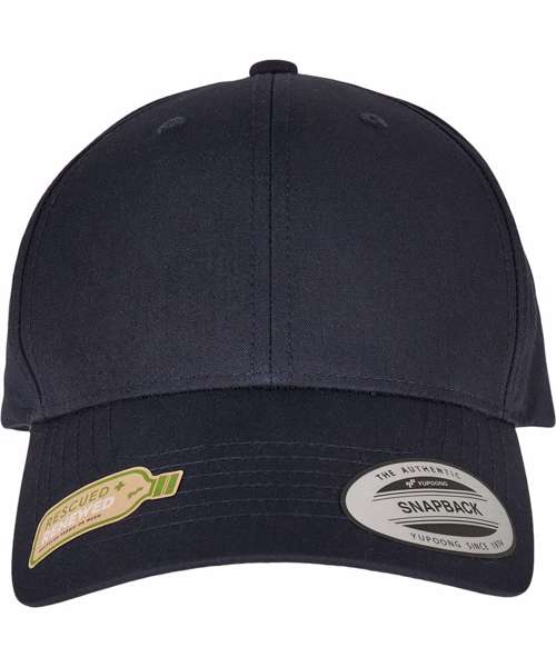 Snapback, curved visor, six-panel. Made from recycled polyester twill.