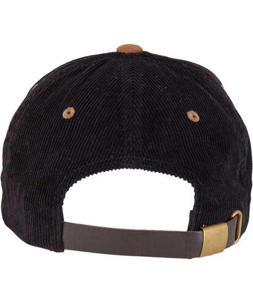 6-panel corduroy crown with reinforced front. Pre-curved velour brim. Adjustable metal buckle closure.